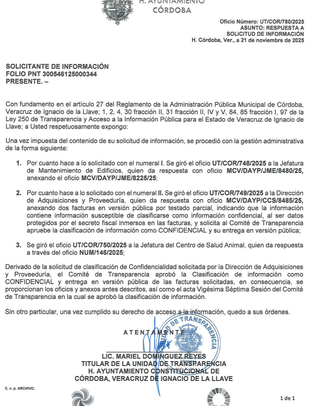 Frente a estas revelaciones, el Ayuntamiento no actuó con transparencia, sino que activó un protocolo para restringir el acceso a la información. La Dirección de Adquisiciones y Proveeduría, al entregar las facturas, lo hizo en una “versión pública por testado parcial” y solicitó formalmente al Comité de Transparencia del mismo municipio que clasificara como CONFIDENCIAL los datos tachados. El Comité, en una sesión donde sus tres integrantes votaron a favor por unanimidad, avaló la solicitud.