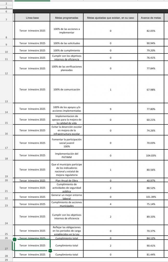 Correspondiente al tercer trimestre del 2025 este es el indicador más bajo de toda la administración y refleja una realidad palpable en las calles de la ciudad: baches sin reparar, vialidades deterioradas y la reciente aparición de socavones en distintas colonias.