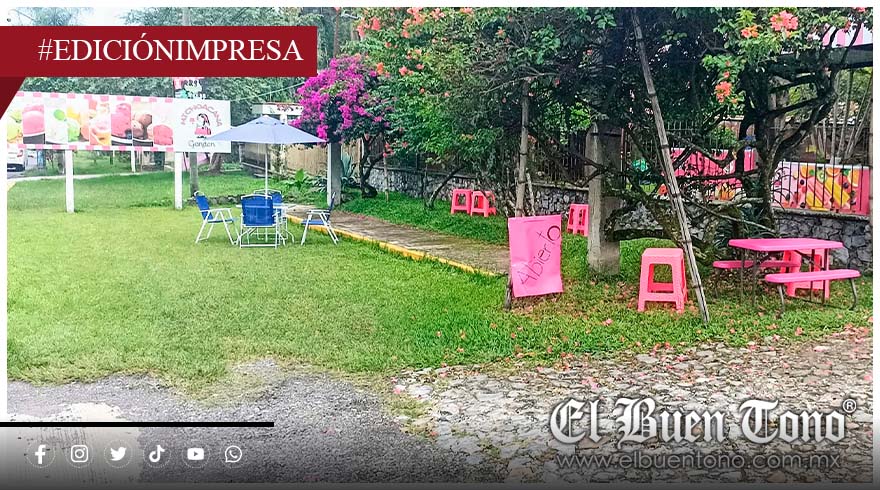 Instalado dentro de una vivienda particular el negocio colocó mobiliario en el pasto que colinda con la banqueta, afectando directamente el libre tránsito peatonal. Esta ocupación irregular del espacio público es visible, cotidiana y completamente tolerada por el ayuntamiento que encabeza Juan Martínez Flores.