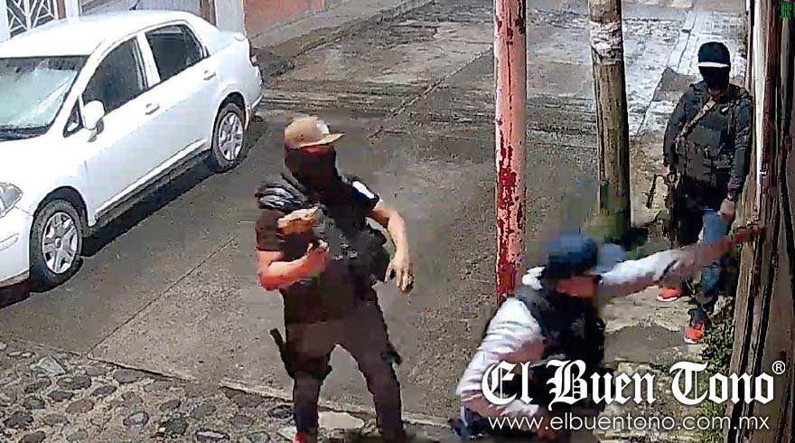 En base a grabaciones de videovigilancia, los hechos ocurrieron a las 3:27 horas, cuando en la cabecera municipal arribó una camioneta roja con cincos hombres portando chalecos antibalas, encapuchados, con gorra y armas largas.