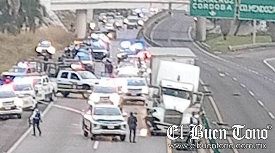 ORIZABA.- El robo de un tráiler generó una intensa movilización de policías locales y estatales, dejando una patrulla destrozada y causando la obstrucción total de la carretera Veracruz-Puebla.