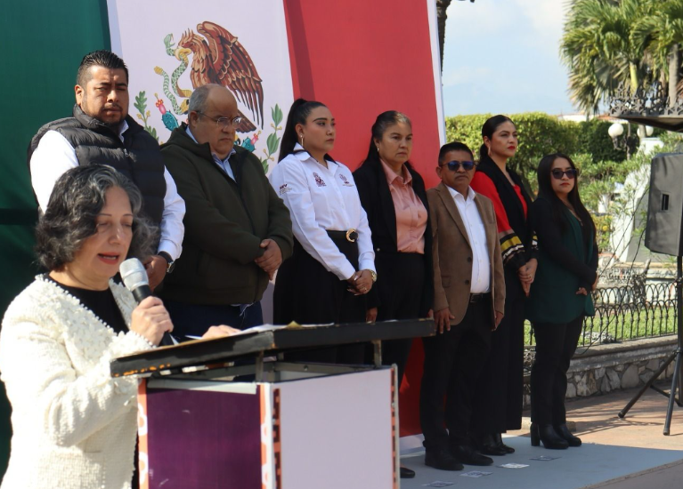 Durante el evento, la cronista de la ciudad, Minerva Salas Bretón ofreció una elocuente reseña histórica en la que destacó la trascendencia de la bandera como el vínculo más fuerte de unión entre los mexicanos. Detalló la trayectoria de nuestro lábaro patrio, el cual ha pasado por diversas modificaciones hasta consolidarse como el emblema de soberanía y libertad que hoy nos representa.