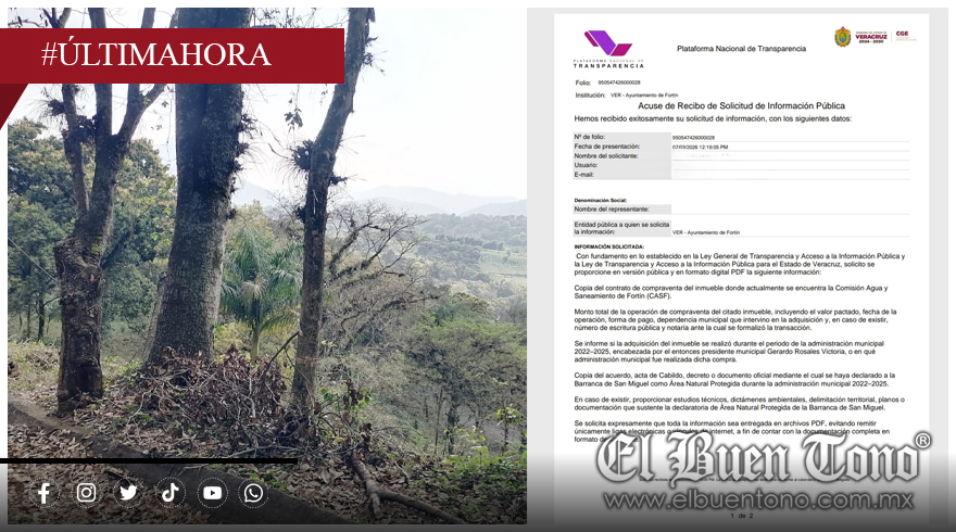 Ante esa cadena de omisiones, una solicitud formal de acceso a la información busca obligar al Ayuntamiento de Fortín a entregar contratos, escrituras, actas oficiales y estudios técnicos que expliquen qué ocurrió realmente durante aquella administración. La exigencia apunta a esclarecer si la compra del inmueble de la CASF se realizó en ese periodo y si existe sustento legal para la declaratoria ambiental anunciada.