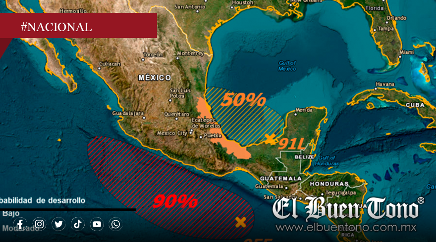 📍 Bahía de Campeche – La Oficina Nacional de Administración Oceánica y Atmosférica (NOAA, por sus siglas en inglés) ha elevado al 70% la probabilidad de que la zona de baja presión ubicada en la Bahía de Campeche evolucione a ciclón tropical en las próximas horas. Este fenómeno ha sido designado oficialmente como Invest 91L y, de continuar su desarrollo, recibiría el nombre de Barry, convirtiéndose en el segundo ciclón de la temporada del Atlántico.