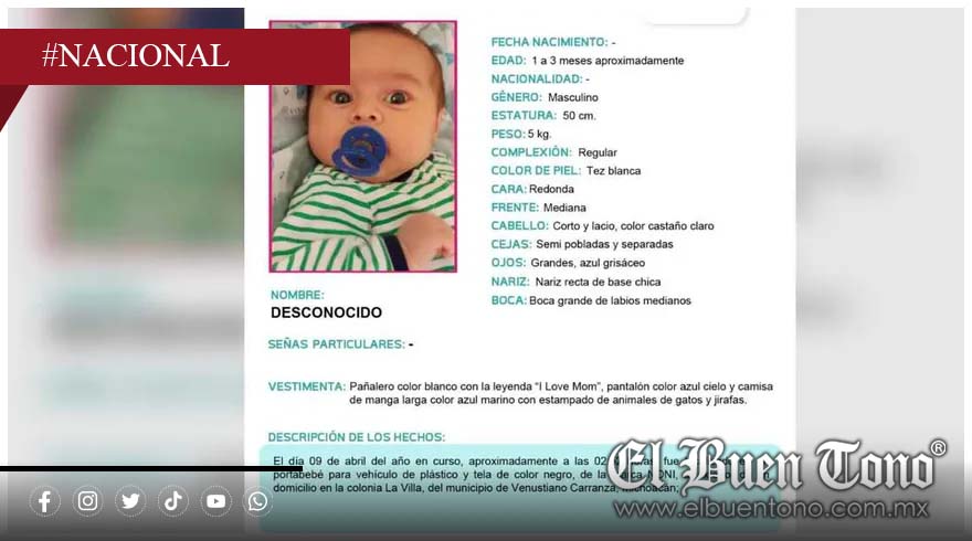Las autoridades hacen un llamado urgente a la población para brindar cualquier información que ayude a identificar a los padres o a personas cercanas al infante.
