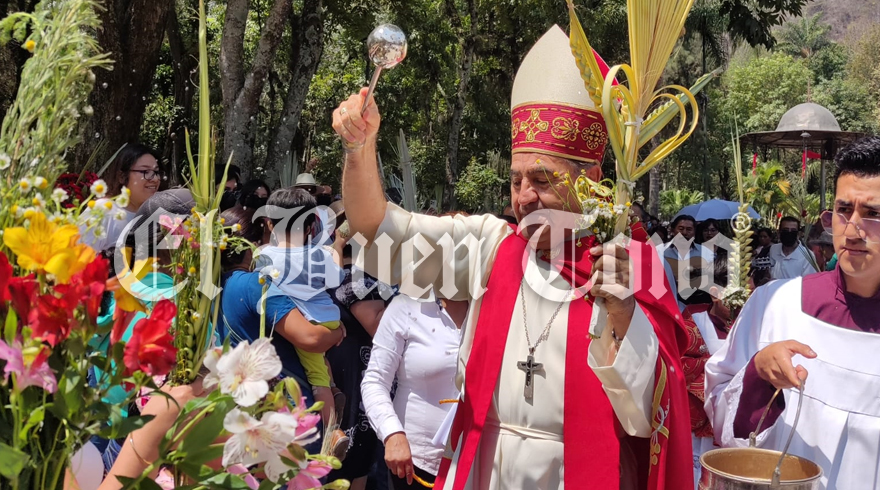 Orizaba.- El obispo de Orizaba, Eduardo Cervantes Merino realizó la bendición de palmas hoy domingo de Ramos, con lo que da inicio a la Semana Santa.