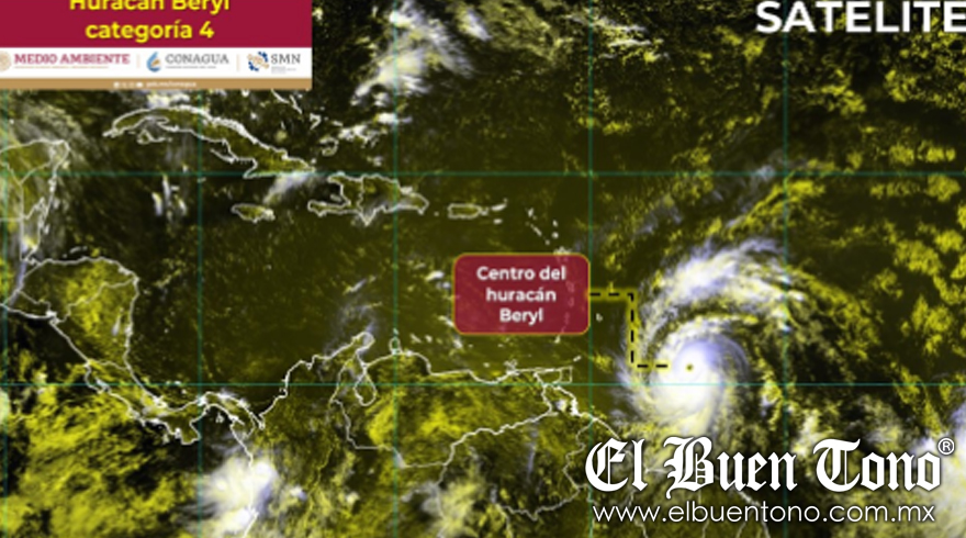 Según el último reporte, su centro se encuentra a 675 kilómetros al este-sureste de Barbados y a 3 mil 700 kilómetros al este-sureste de Cancún, Quintana Roo. “Beryl” presenta vientos máximos sostenidos de 185 kilómetros por hora y rachas de hasta 220 kilómetros por hora (km/h).