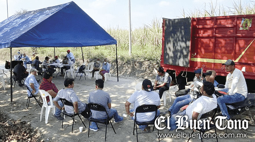 CUICHAPA.- La manifestación encabezada por líderes de la ULPCA y CNPR cumple tres días, los productores abastecedores de caña del Ingenio San Nicolás mantienen el bloqueo en el paso de camiones hacia la factoría.