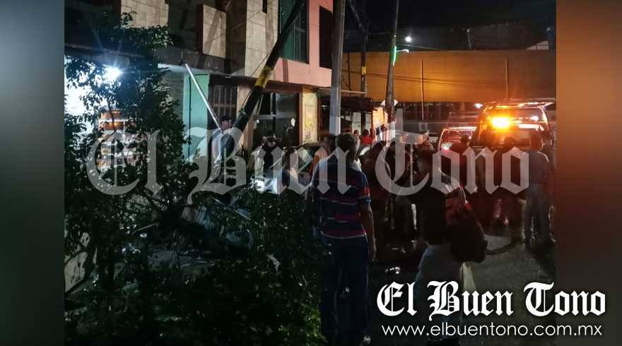 Atoyac, Ver.-El conductor de un vehículo particular a punto estuvo de provocar una tragedia luego de que se impactara contra una caseta telefonía, derribar un árbol y a posteriormente un poste de telefonía a las afueras de una vivienda ubicada frente a la iglesia de Cristo Rey en la comunidad de Potrero Nuevo.