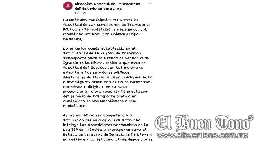 A través de un comunicado, la dirección de Transporte Público del Estado de Veracruz fijó su postura ante el servicio de pasajeros Búho y Gallo, luego de que varios transportistas y taxistas realizaran actos de protesta bloqueando por horas el acceso a una conocida plaza comercial de esta ciudad.
