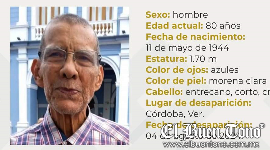 Córdoba, Ver.- Un abuelito, identificado como Maximino Loyo Mayo, 80 años de edad, desde el 4 de agosto del presente año y no ha sido localizado.