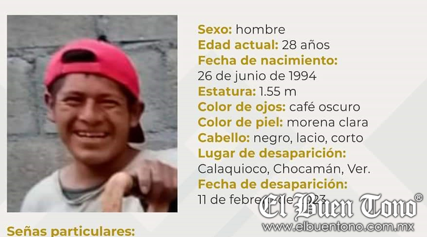 Se trata de Anselmo Napoleón Moguel de 29 años de edad y con domicilio en la comunidad de Calaquioco del municipio de Chocamán quien desde el día 11 de febrero salió de su casa con dirección a su trabajo, pero ya no regresó.