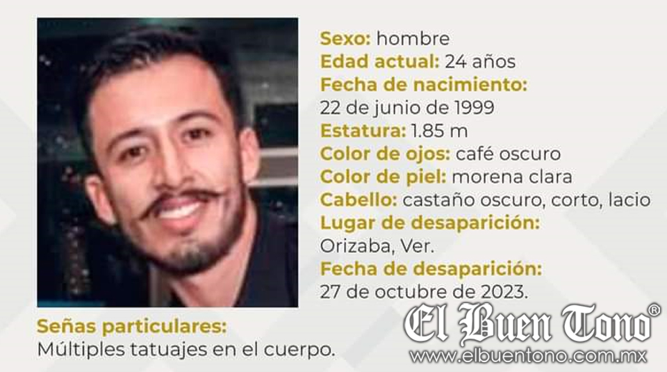 Orizaba, Ver.- Un joven identificado como Emilio Esteban Quiróz Rodriguez, de 24 años de edad, se encuentra como desaparecido desde el día viernes 27 de octubre; como seña particular tiene tatuajes en diferentes partes del cuerpo.