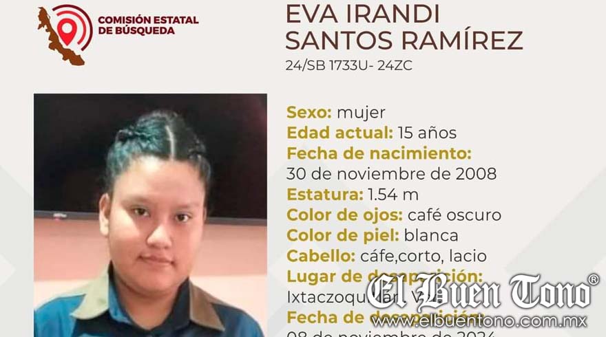 Se trata de Eva Irandi Santos Ramírez, quien desapareció en el municipio de Ixtaczoquitlán.