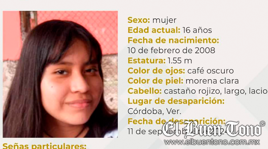 Córdoba, Ver.- La menor Ingrid Estela García García, de 16 años de edad, fue reportada como desaparecida desde el día de ayer miércoles 11 de septiembre.