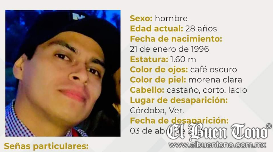Córdoba.- La Comisión Estatal de Búsqueda emitió un boletín de emergencia, por la desaparición de Jonathan Gerardo Muñoz Manilla, de 28 años, quien desapareció la mañana del miércoles en Córdoba.