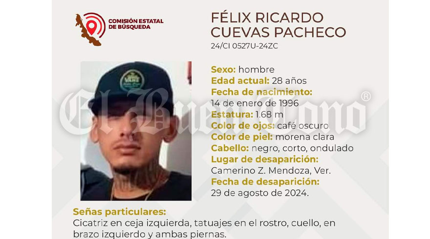 Félix Ricardo Cuevas Pacheco, de 28 años de edad, es buscado por sus familiares ya que desde el 29 de agosto del presente año se encuentra como desaparecido.