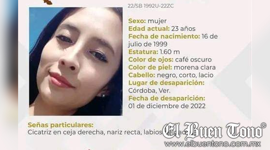 Córdoba Ver.- Una joven identificada como Carmen Vázquez Pérez, de 23 años de edad, se encuentra como desaparecida desde el día de ayer primero de diciembre.