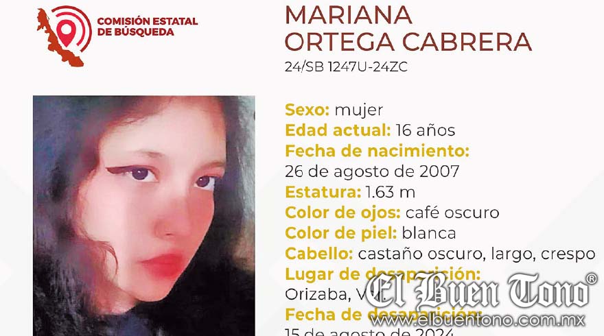 Mariana, de 16 años, fue vista por última vez en Orizaba el pasado miércoles, y desde entonces se desconoce su paradero.