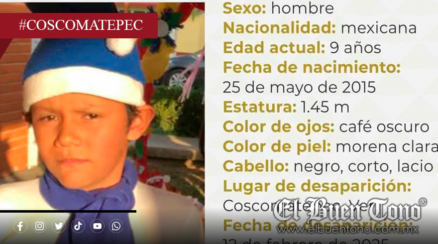 Coscomatepec, Ver.- Un niño, identificado como Román Caleb Chávez Fernández, de 9 años de edad, esta desaparecido desde el día 12 de febrero.