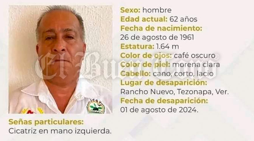 Tezonapa.-Los familiares de Rufino Martínez Ginez solicitan apoyo para localizarlo, luego de que fuera visto por última vez en la congregación de Rancho nuevo, Tezonapa y no han sabido nada de él desde el pasado jueves 01 de agosto.
