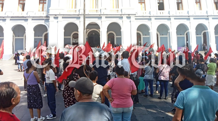 Córdoba, Ver.- Aprovechando el malestar de los baches en Córdoba, los militantes del Movimiento de Antorcha Campesina realizan plantón frente al Palacio Municipal. Buscan acaparar obras para su beneficio.