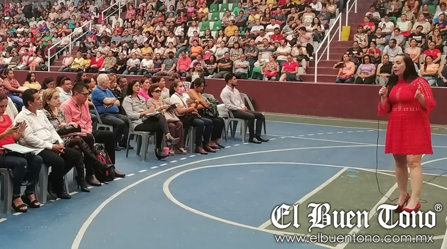 En las instalaciones de la Unidad Deportiva Eliazer Morales, más de un centenar de maestros y directivos de preescolares, primarias, telesecundarias se congregaron para presenciar la charla.