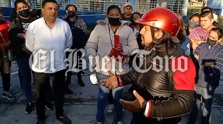 La reunión se desarrolla al interior del plantel, donde la supervisora y el delegado de la SEV, Ángel Huerta Anzures sostienen un diálogo con los padres de familia inconformes.