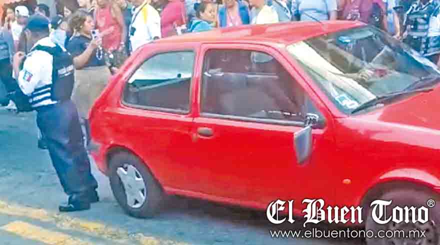 Al percatarse de la supuesta infidelidad de su pareja, impactó el automóvil y le dañó el espejo lateral, además de desmayarse para “llamar la atención” de los curiosos.