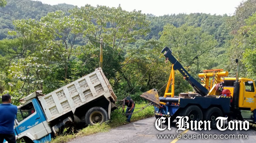 San Andrés Tenejapan.- Un camión materialista acabó en un barranco, luego de que su chofer perdió el control del volante y se salió de la carretera federal Orizaba-Zongolica, a la altura de la comunidad de Petlacala.