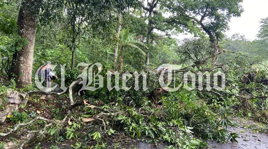 Coetzala.- Un árbol cayó sobre la carretera estatal Coetzala a Naranjal, por el tramo conocido como “Las Palmas”, bloqueando el camino en su totalidad.