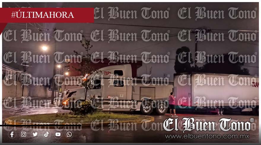 De acuerdo con los primeros reportes, la pesada unidad realizaba un giro en la glorieta cuando, por causas aún no confirmadas, la quinta rueda perdió el seguro y el remolque se soltó del enganche. El contenedor quedó atravesado sobre la carpeta asfáltica, bloqueando parcialmente la vialidad y generando un intenso congestionamiento vehicular.