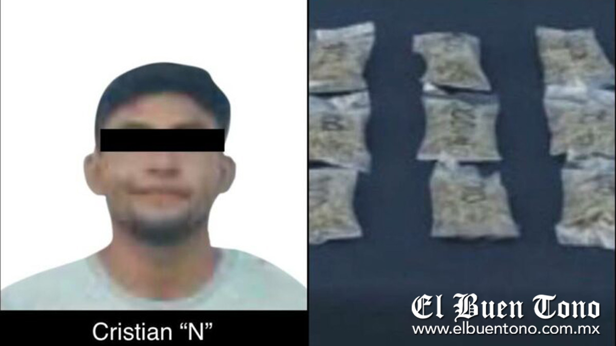 Cristian “N”, al ver que los elementos se le acercaron, lesionó a un uniformado con un arma blanca; por lo que fue sometido y en la revisión, además del arma blanca, se le hallaron 15 sobres con marihuana.