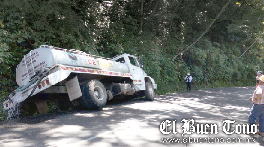 Ixtaczoquitlán.- Una pipa que es propiedad del Ayuntamiento zoquiteco, se salió del camino y acabó siniestrada dentro de la cuneta lateral, cuando circulaba sobre uno de los carriles de la carretera federal Ixtaczoquitlán-Fortín.