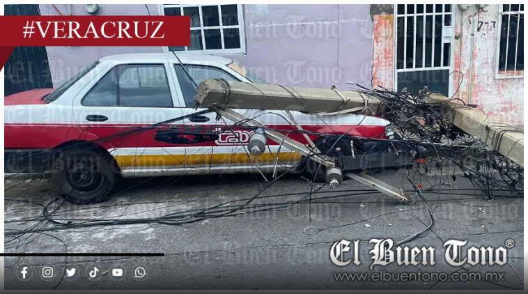 Veracruz, Ver.- Un poste de energía eléctrica se desplomó la tarde de este lunes sobre un taxi en la calle 2, entre Cortés y Juan Soto, en la colonia 21 de Abril, provocando la interrupción del suministro eléctrico en toda la zona.