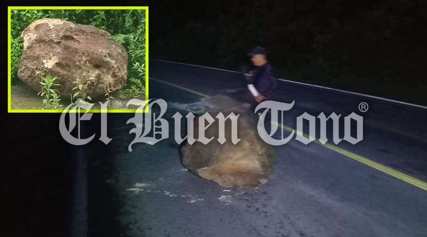 Coscomatepec.- Una roca de gran tamaño cayó en la madrugada del sábado sobre la carretera federal Fortín-Huatusco, en el tramo conocido por sus pronunciadas curvas, poco antes de llegar al campo deportivo de Coscomatepec.