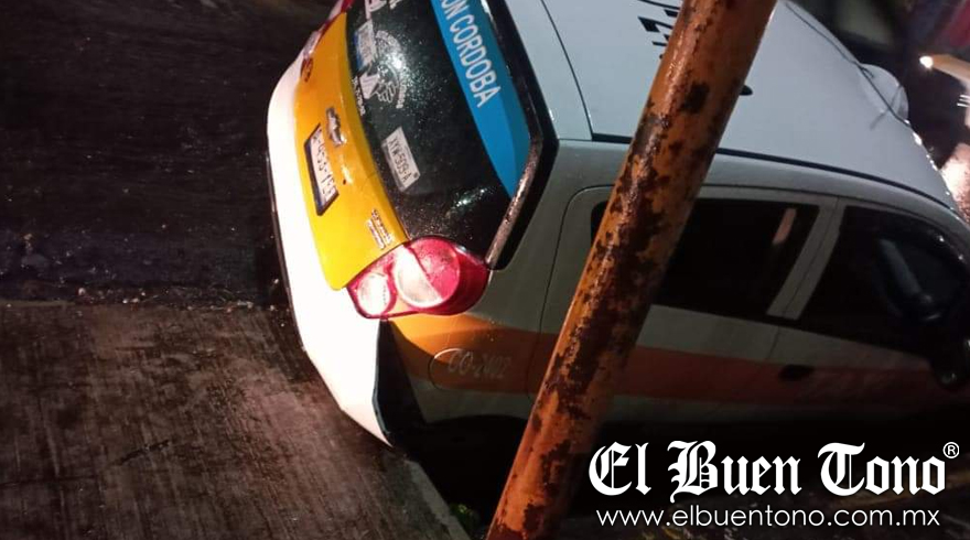 Fortín. – Un taxi marcado con el económico CO-2402, el cual que circulaba sobre la carretera al Barreal, terminó estancado al caer a una cuneta a la altura de la colonia Santa Leticia.