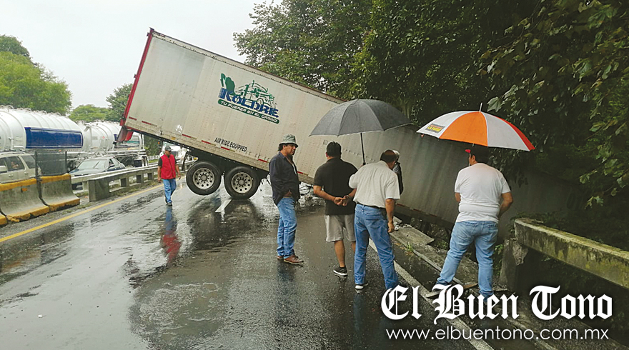 Debido a esta situación, se cerró la circulación de manera total debido a que una parte de la caja con razón social Koldre Transportes SA de CV obstaculizó el carril de bajada.
