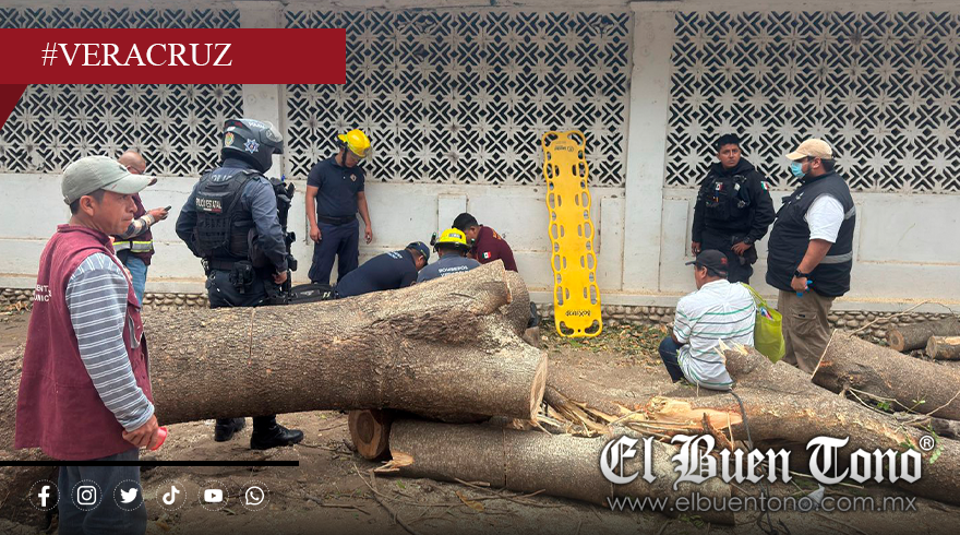 Veracruz, Ver.- Un empleado del Ayuntamiento de Veracruz resultó lesionadotras traerle el tronco de árbol cuando realizaba labores para podarlo.