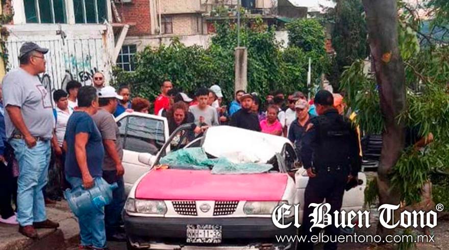 CDMX.- En un incidente impactante ocurrido en la colonia Pueblo de Santa Lucía, en la alcaldía Álvaro Obregón de la Ciudad de México, un hombre quedó atrapado en el interior de un vehículo tras la caída de un árbol sobre la unidad.