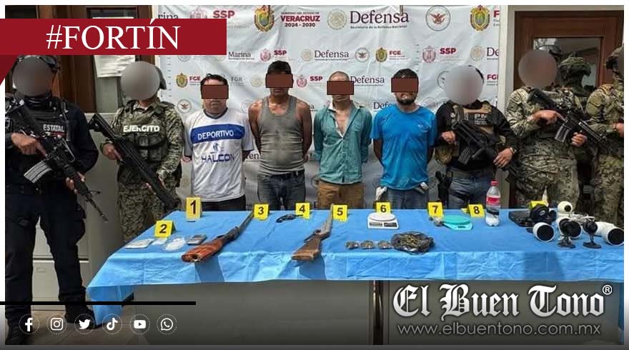 En dicho operativo se detuvo en flagrancia a Rodrigo “N”, José Alfredo “N”, Rafael “N” y Andrés “N”. Asimismo, se aseguró hierba verde seca con características similares a las de la marihuana, una sustancia color blanco, básculas grameras, un cartucho balístico, armas de fuego y cámaras de vigilancia.