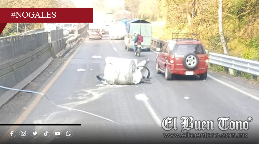 Nogales, Ver. – La mañana de este viernes se reportó un incidente sobre la carretera Orizaba–Nogales, a la altura de la conocida curva de Los Marranos, luego de que a un tráiler tipo plana se le desprendieran dos rollos de metal, los cuales quedaron sobre la carpeta asfáltica.