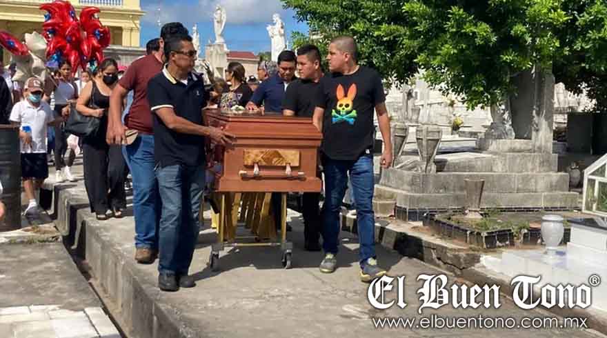 Con decenas de globos, flores y mariachi, sus familiares recorrieron la entrada principal del panteón particular para llegar al lugar donde permanecerán sus restos.