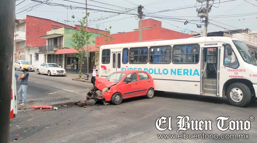 Córdoba.- El conductor de un autobús de Súper Pollos Neria, provocó un choque con un vehículo compacto, la mañana de ayer en la avenida 3 y calle 8.