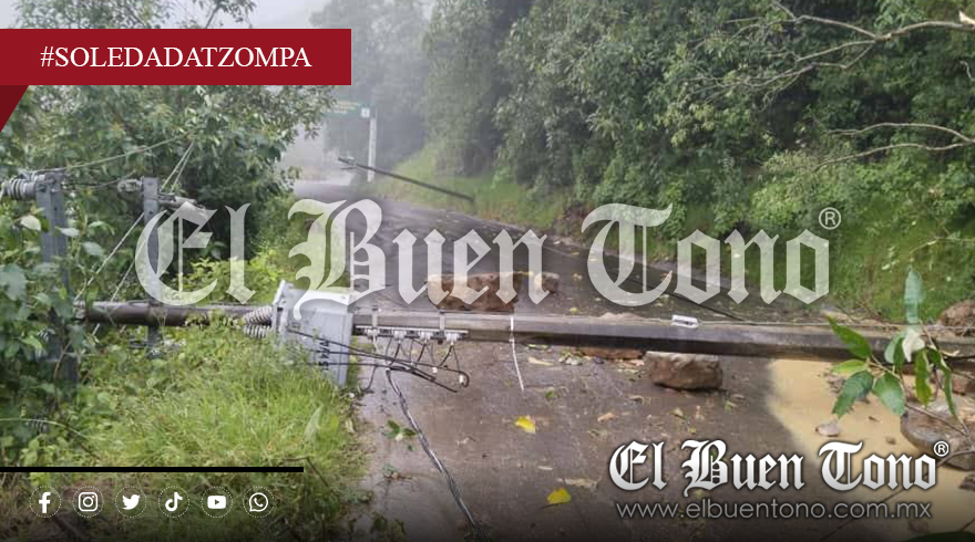 Soledad Atzompa, Ver.– Un poste de concreto de la CFE cayó sobre la carretera en la localidad de Xiquila, bloqueando el paso vehicular y dejando momentáneamente sin tránsito la zona.