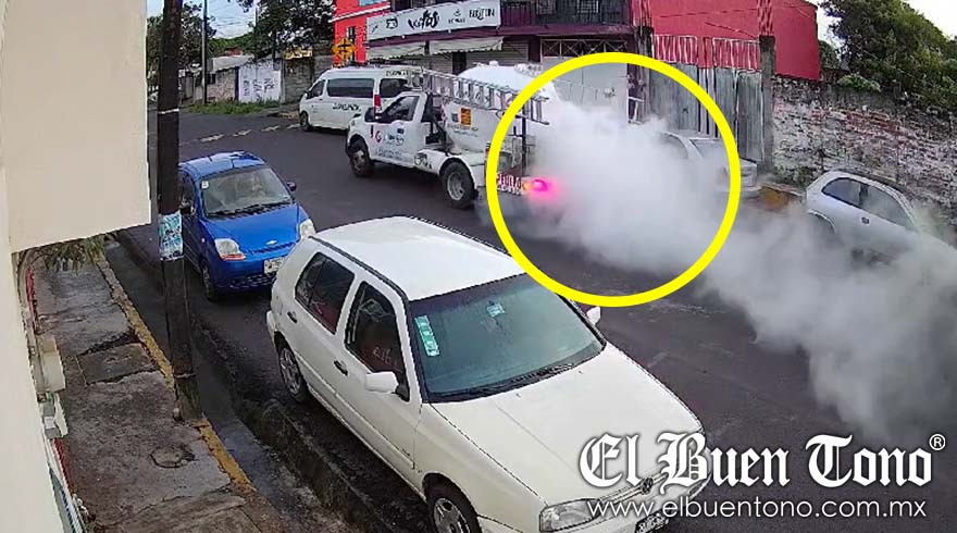 Fortín. – Una cámara de seguridad de una vivienda captó el momento exacto en que se registró la fuga de gas en una pipa de la empresa Mabarak cuando circulaba sobre la calle 6, entre las avenidas 2 y 4.