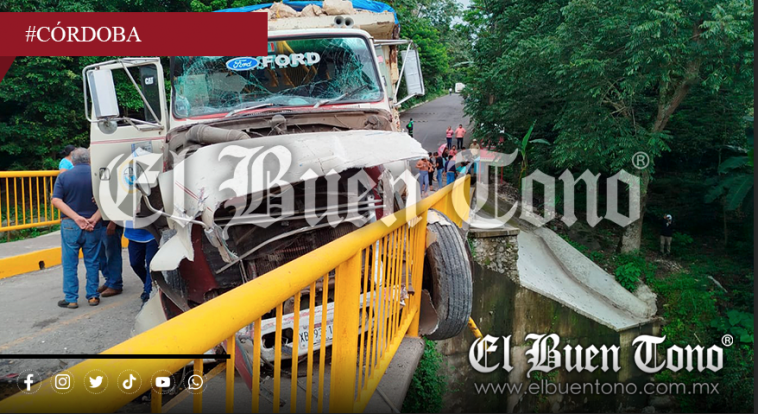 Córdoba, Ver.- Un camión de volteo cargado de piedras protagonizó un peligroso incidente en el puente que conecta a la comunidad de Cuauhtémoc, al quedarse sin frenos y quedar a punto de caer al río. El vehículo se detuvo gracias al barandal del puente, que evitó una tragedia mayor.