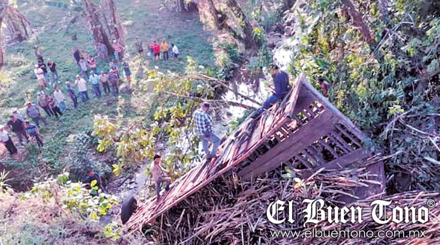 Ixtaczoquitlán.- Un camión cargado con caña se salió del camino y cayó desde lo alto del puente la Ermita en la carretera estatal a Dos Ríos, a la altura de Sumidero.