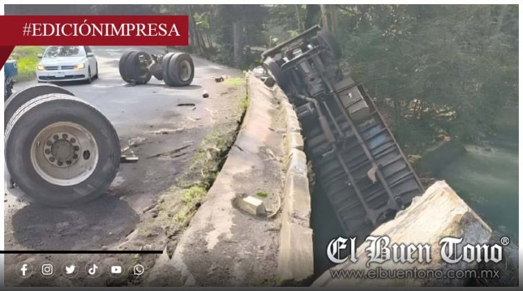 Atoyac.- Un camión de carga, repleto de caña de azúcar, cayó a un canal de riego al desbaratarse al pasar por el puente El Chiquihuite. El accidente dejó al conductor lesionado. El siniestro se registró la mañana del sábado, cuando la unidad se dirigía al Ingenio El Potrero para descargar. Durante una pendiente pronunciada, dos ejes completos de llantas se desprendieron del chasis del vehículo.