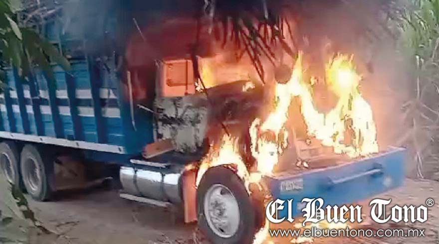 Omealca.- Un cortocircuito en el motor de un camión cargado de caña provocó un incendio en un camino de terracería, cuando se dirigía al ingenio Providencia.